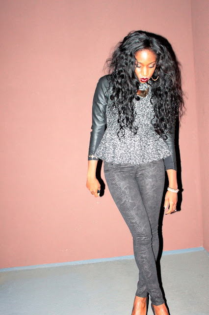 Peplum Jacket Top- Cotton On; Snakeskin Print Pant- H&M; Wedges- Aldo; Gold Necklace- Urban Outfitters