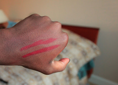 This is actually a really unique color because its not quite pink and not quite red. The closet thing I have to it is an Inglot matte lip pencil in #34 which is a little darker than this.