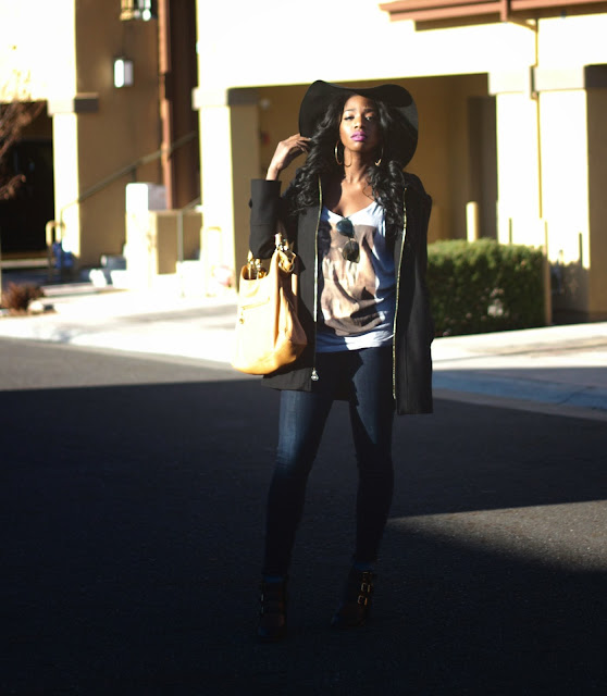 Coat- Michael Kors; Tank- H&M; Jeans- H&M; Booties- Steve Madden, Hat- H&M