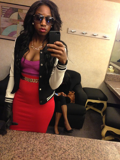 Jacket- Members Only; Crop Top- Cotton On; Body Con Skirt- Primark; Gloves- H&M; Necklace- ALDO; Sandals- Reflection; Belt- Primark