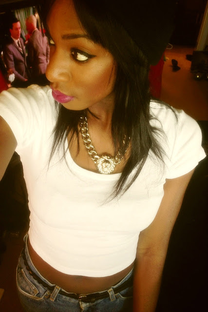 White Crop- Urban Outfitters; Jeans- Thrifted; Heels- Urban Outfitter; Beanie- Street Vendor; Necklace- Melody Ehsani; Readers- Forever 21